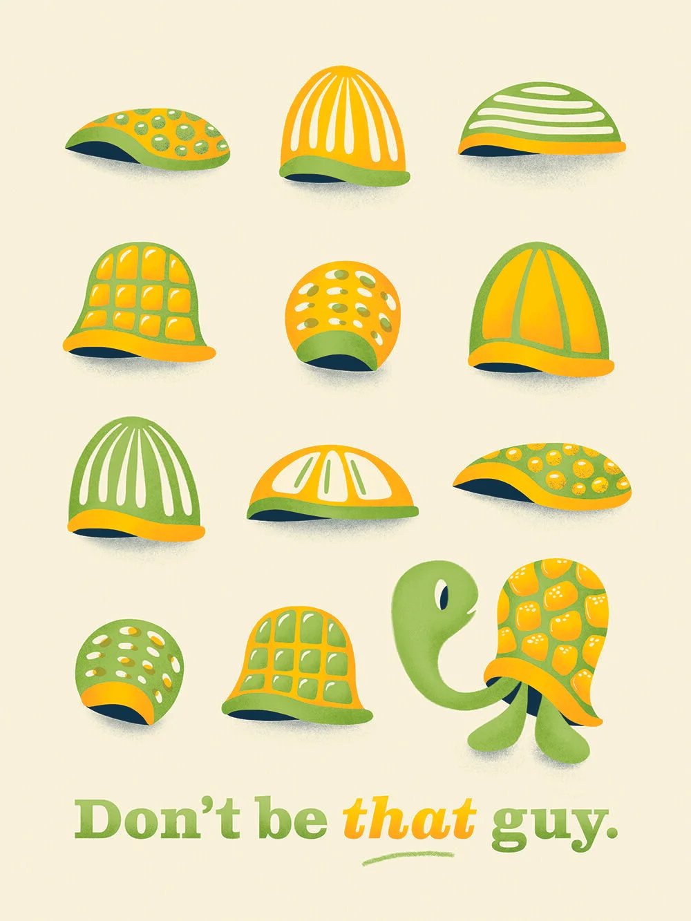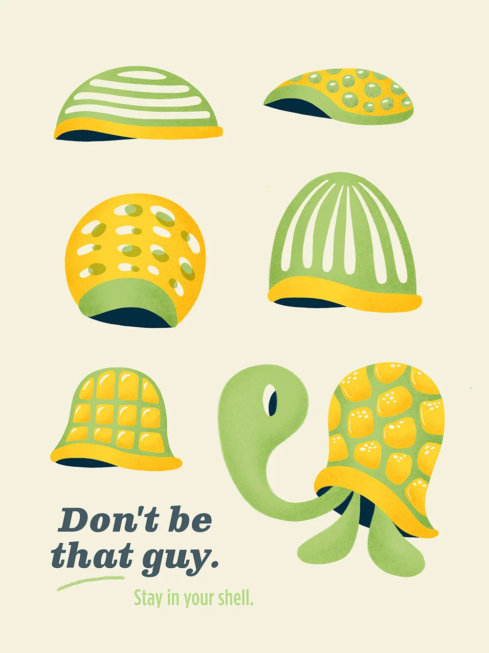 Instead of working directly on the poster, I started drawing simply for fun, and when I allow myself to simply draw, there’s always one subject I return to time and time again: turtles. I can’t tell you why, but for some reason ever since I was a child, I have loved drawing turtles. So that’s what I did. And while drawing the turtles, I started to think about their different parts, particularly their shells and how fascinating it is that they carry their homes with them and can escape into their homes for protection at any time. I started to think about how during this time of quarantine, we are all a bit like turtles, hiding in our respective shells until it’s safe to come out again.